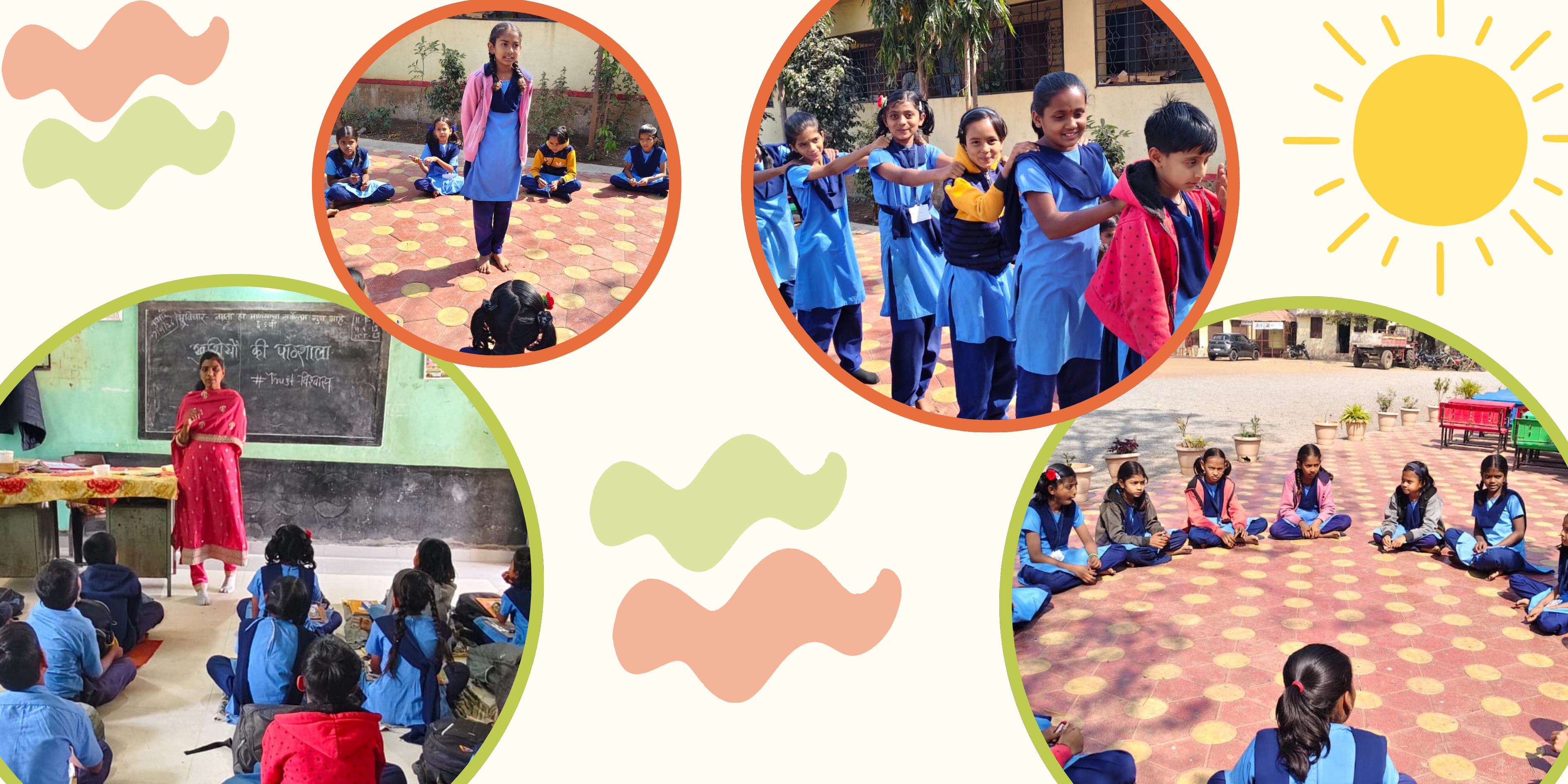 Improve joyful, value-based learning and strengthen foundational skills of children in government schools. Build a cadre of confident rural youth leaders who mentor children and consistently support schools.